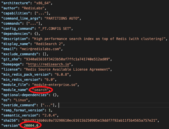 Upgrade RedisJSON to 1.0.4 with the existing arguments and RedisBloom to version 2.2.1 without arguments: