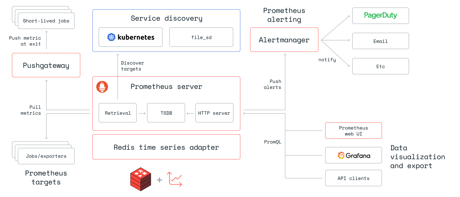Redis Open Source comes with several integrations into existing time series tools. One such integration is our RedisTimeSeries adapter for Prometheus, which keeps all your monitoring metrics inside time series while leveraging the entire Prometheus ecosystem.