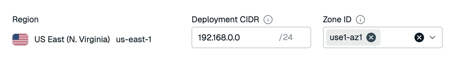 For all other AWS clusters, select an availability zone ID from the Zone IDs list. For more information on how to find an availability zone ID, see the AWS docs.