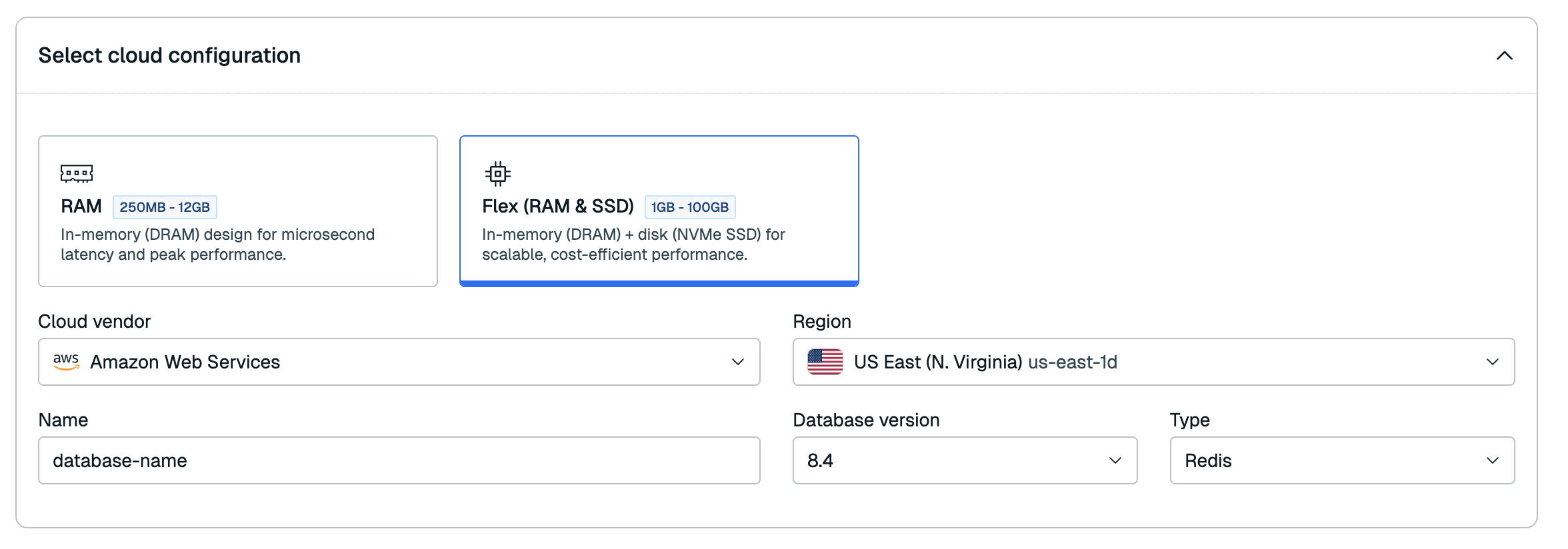 To create a Flex database on Redis Cloud Pro, create a new Pro database with custom settings.