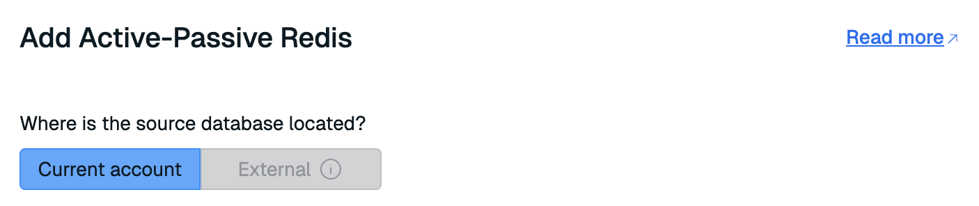 This will open the Add Active-Passive Redis screen. Select where the source database is located.