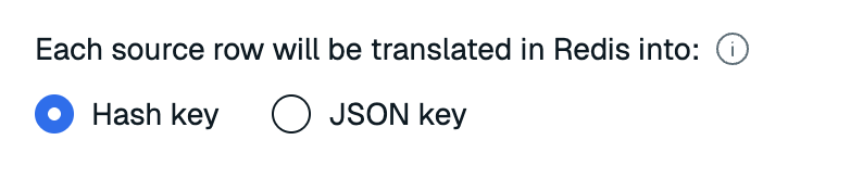 Select the Redis data type to write keys to the target. You can choose Hash or JSON if the target database supports JSON.