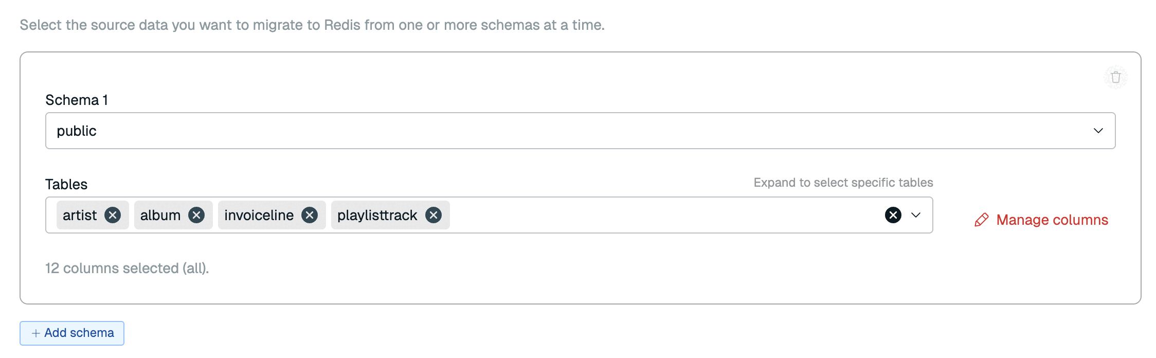 Select the Schema and Tables you want to migrate to the target database from the list.
