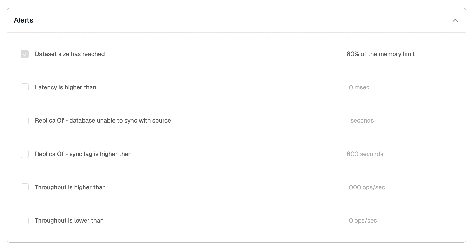| Active-Active Redis | Checked when the database is part of an Active-Active relationship (Redis Cloud Pro only) |