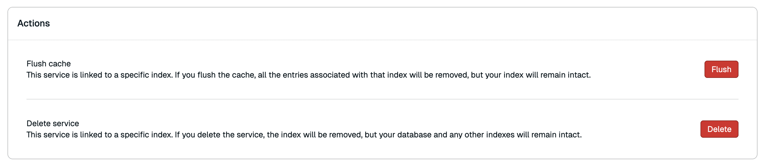 - The Actions section lets you flush or delete your LangCache service.