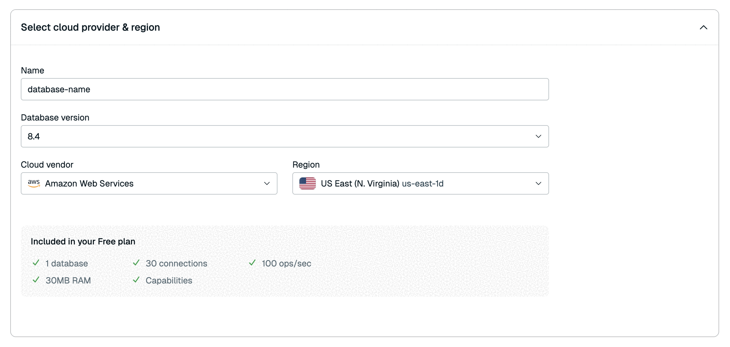 Choose your Cloud vendor and Region. You can choose between Amazon Web Services (AWS), Google Cloud, and Microsoft Azure for the Cloud Vendor.