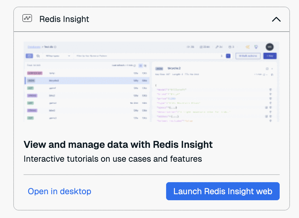 For more information on how to use Redis Insight in your browser, see Open with Redis Insight on Redis Cloud.