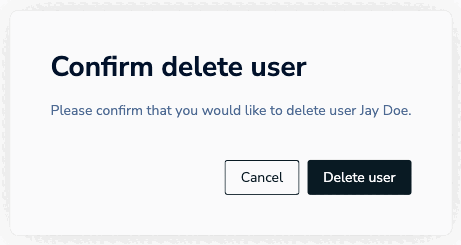 Select Delete user to confirm removal. This is a permanent action that cannot be undone.