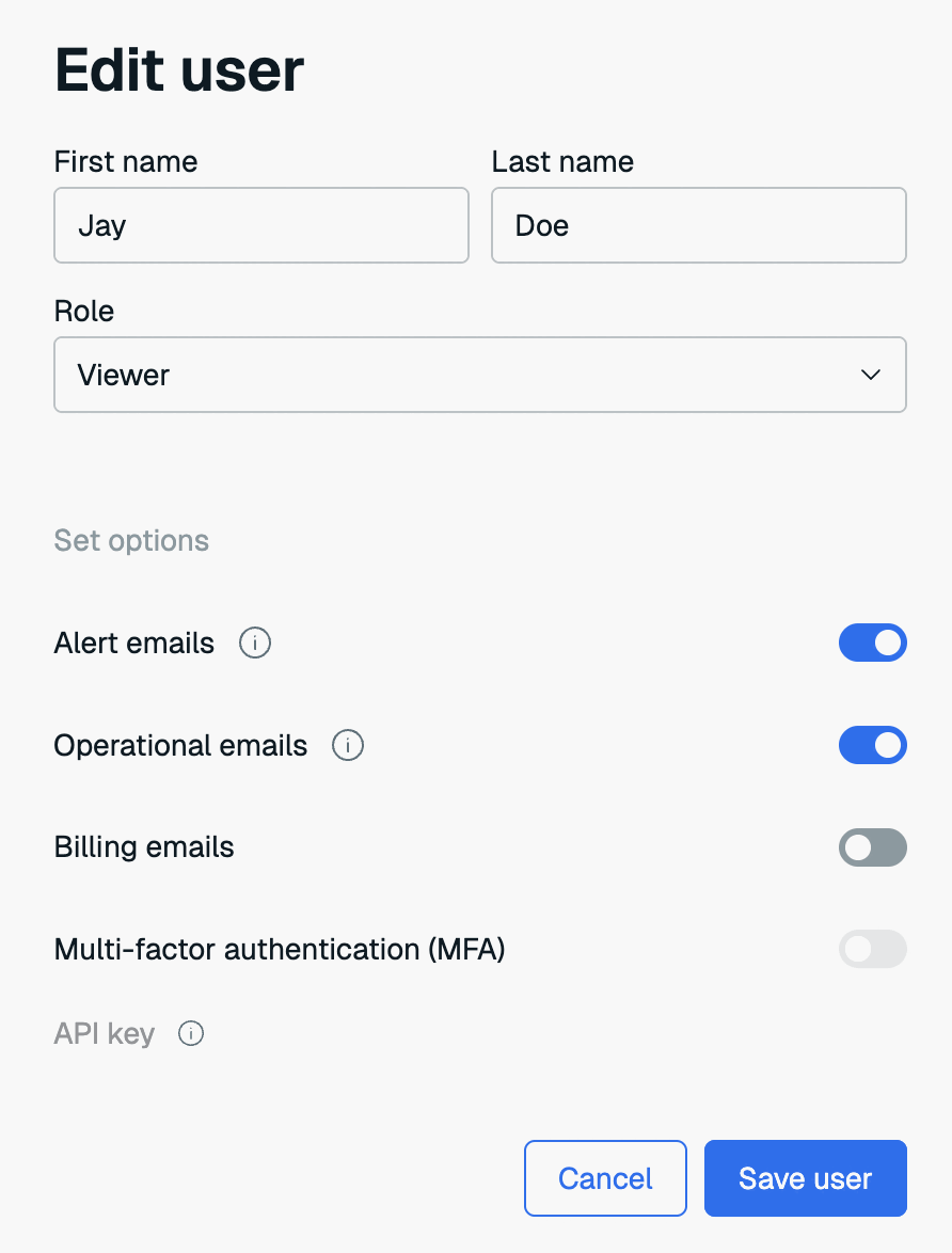 | Last name | Last name of the user displayed in the Redis Cloud console and in email messages |