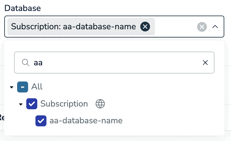 Select one or more Active-Active databases from the Databases list. Active-Active databases are marked with a globe icon.