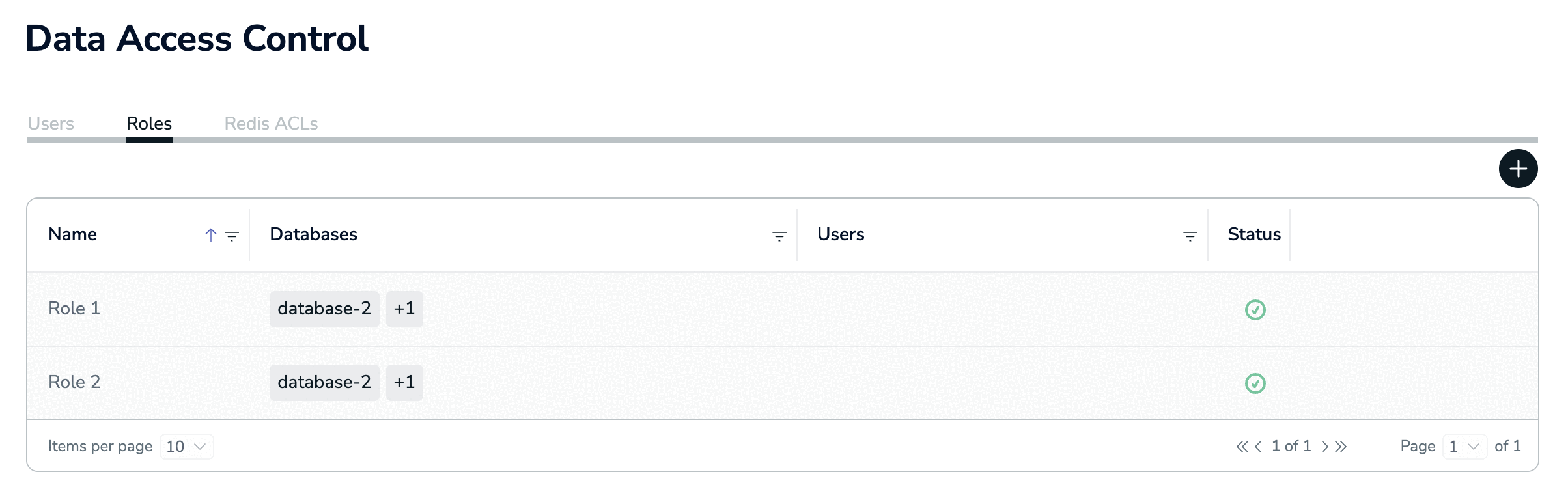 In the Roles tab, you create roles. Each role consists of a set of permissions for one or more Redis Cloud databases.