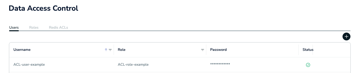 There are three tabs on this screen: Users, Roles, and Redis ACLs.