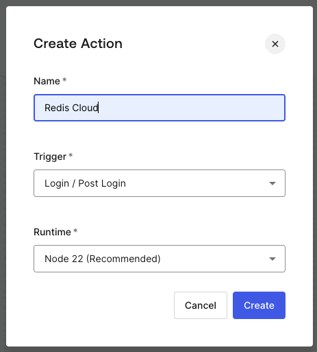 Provide a name for the action and select Create.