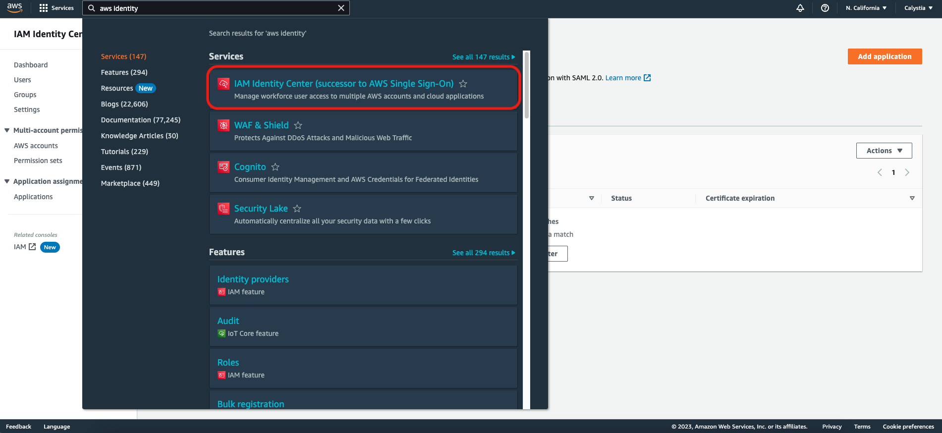 From the main menu, search for IAM Identity Center (successor to AWS Single Sign-On).