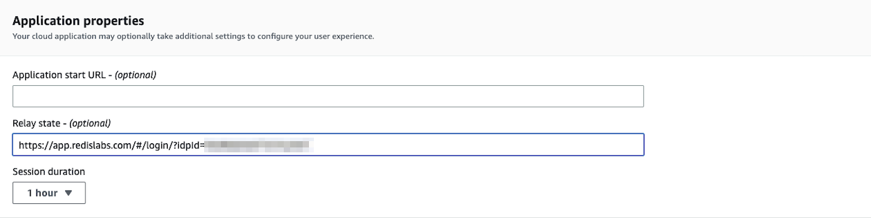 If you would like to also configure an IdP initiated workflow, fill in the relay state field in the Application properties section. Use this URL: