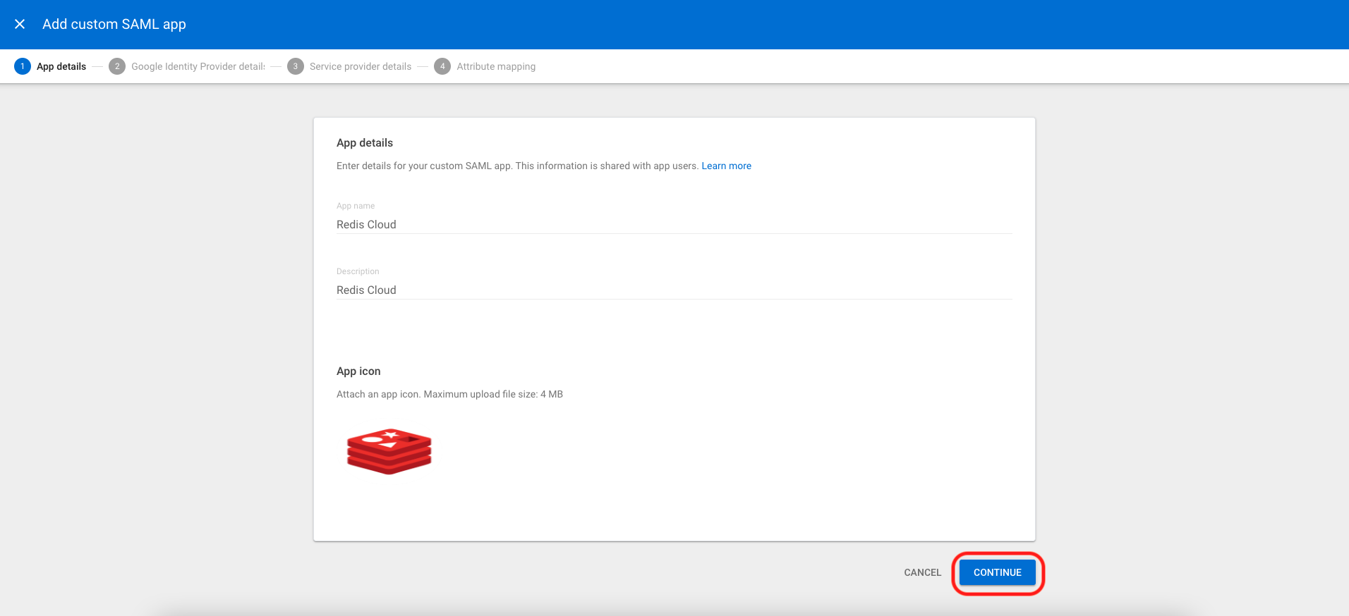 Step 4: Finish SAML configuration in Google Workspace's Redis Cloud Application