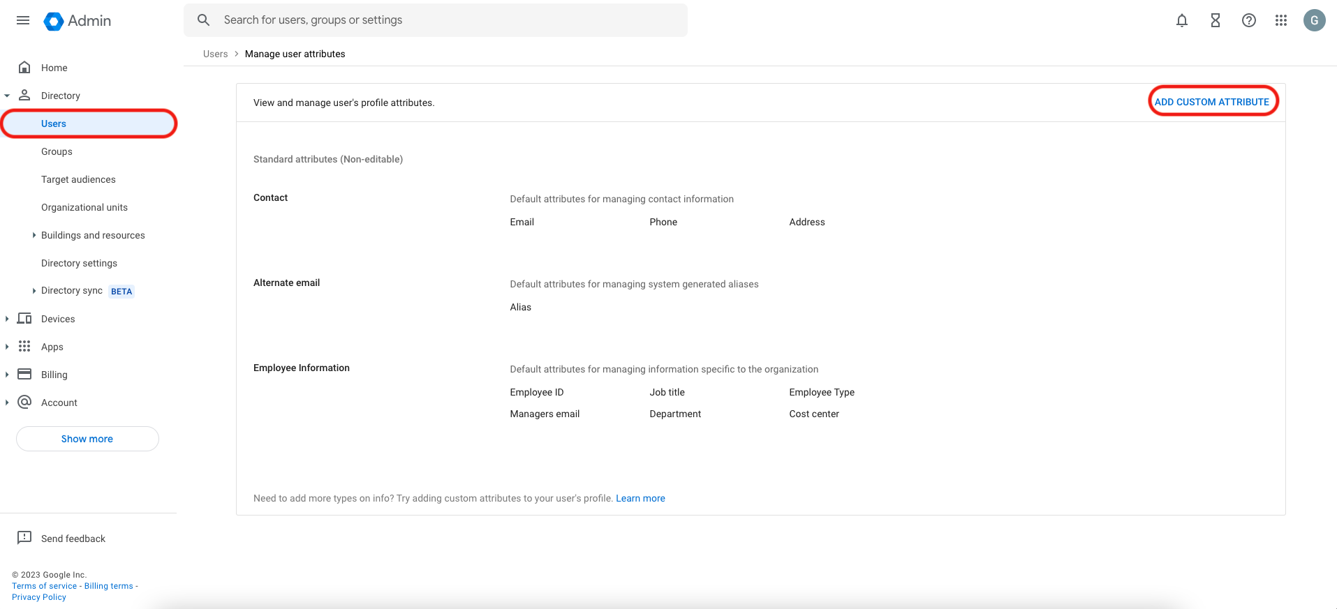 Step 3: Add a custom attribute to Google Workspace's user profile