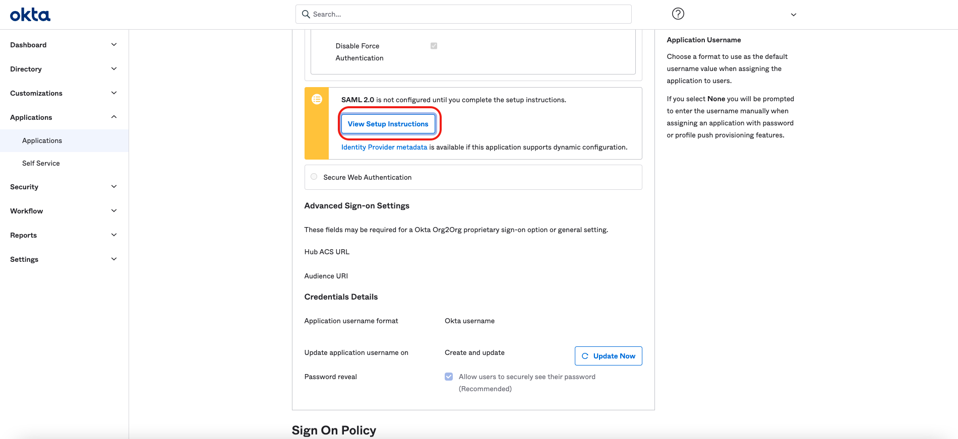 Sign in to the Okta admin console.