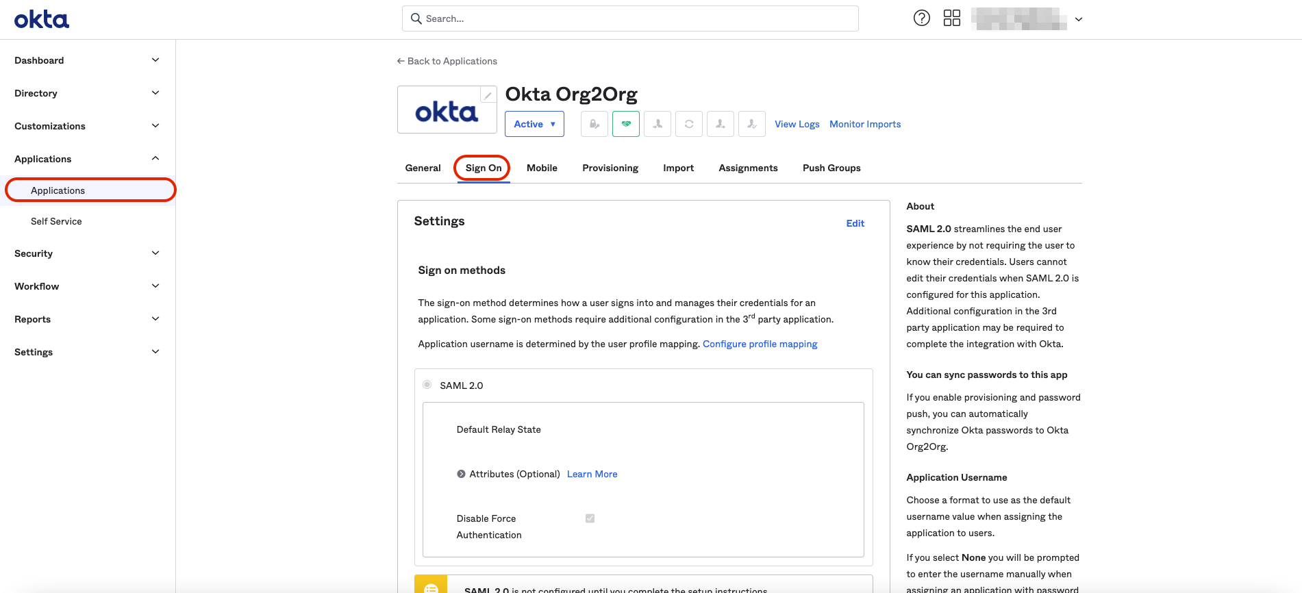 Okta SAML integration guide (Org2Org)