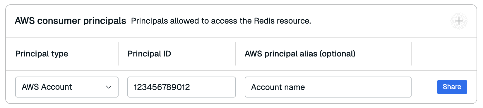 - Associate the Redis Cloud Resource share with one or more AWS principals.