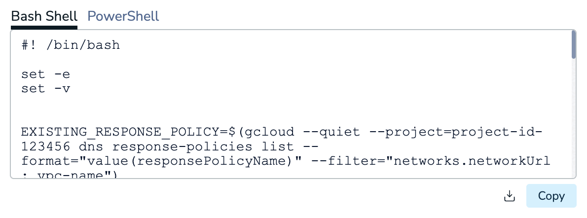 Select either Bash Shell or PowerShell and then download or copy the provided