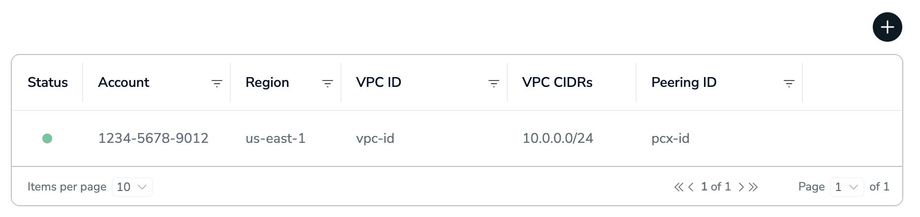To finish VPC peering setup, update your route tables for the peering connection. There may be many different route tables assigned to different VPCs. It is important to choose the route table assigned to the VPC you specified in the Configure VPC Peering section with the following details: