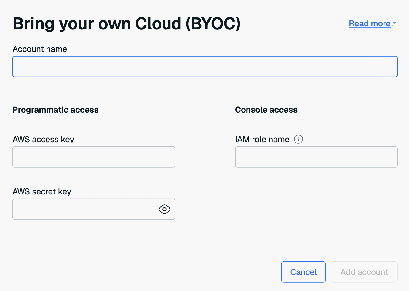You need to create these resources before adding the cloud account to your subscription. To learn more, see Create IAM resources.