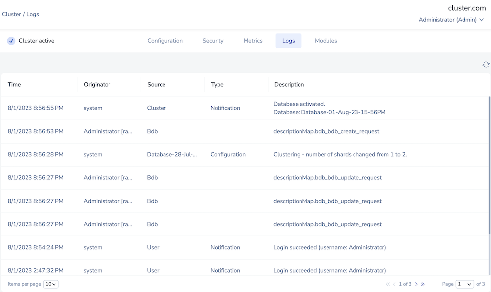 Redis Software provides log files for auditing cluster management actions and troubleshooting. You can view these logs in the UI and on the host operating system.