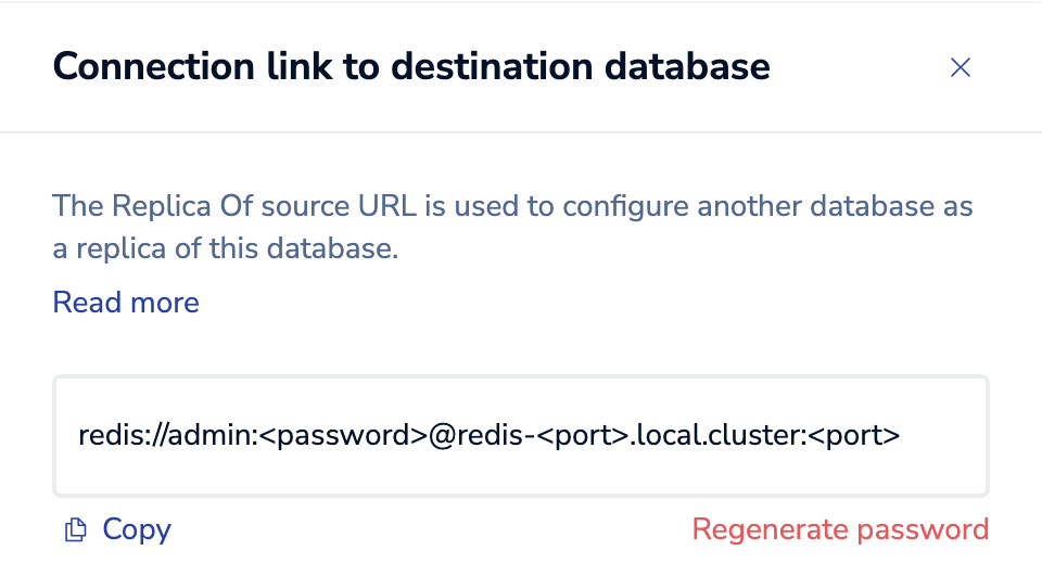 For Source database URL, enter the Replica Of source URL you copied in step 1.