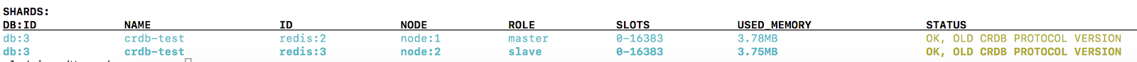 OLD CRDB PROTOCOL VERSION: This instance uses an older CRDB protocol. Redis Software versions 5.4.2 and later use CRDB protocol version 1. You can upgrade the CRDB protocol version when you upgrade the Active-Active database instances. See CRDB protocol version guidelines for more information. -