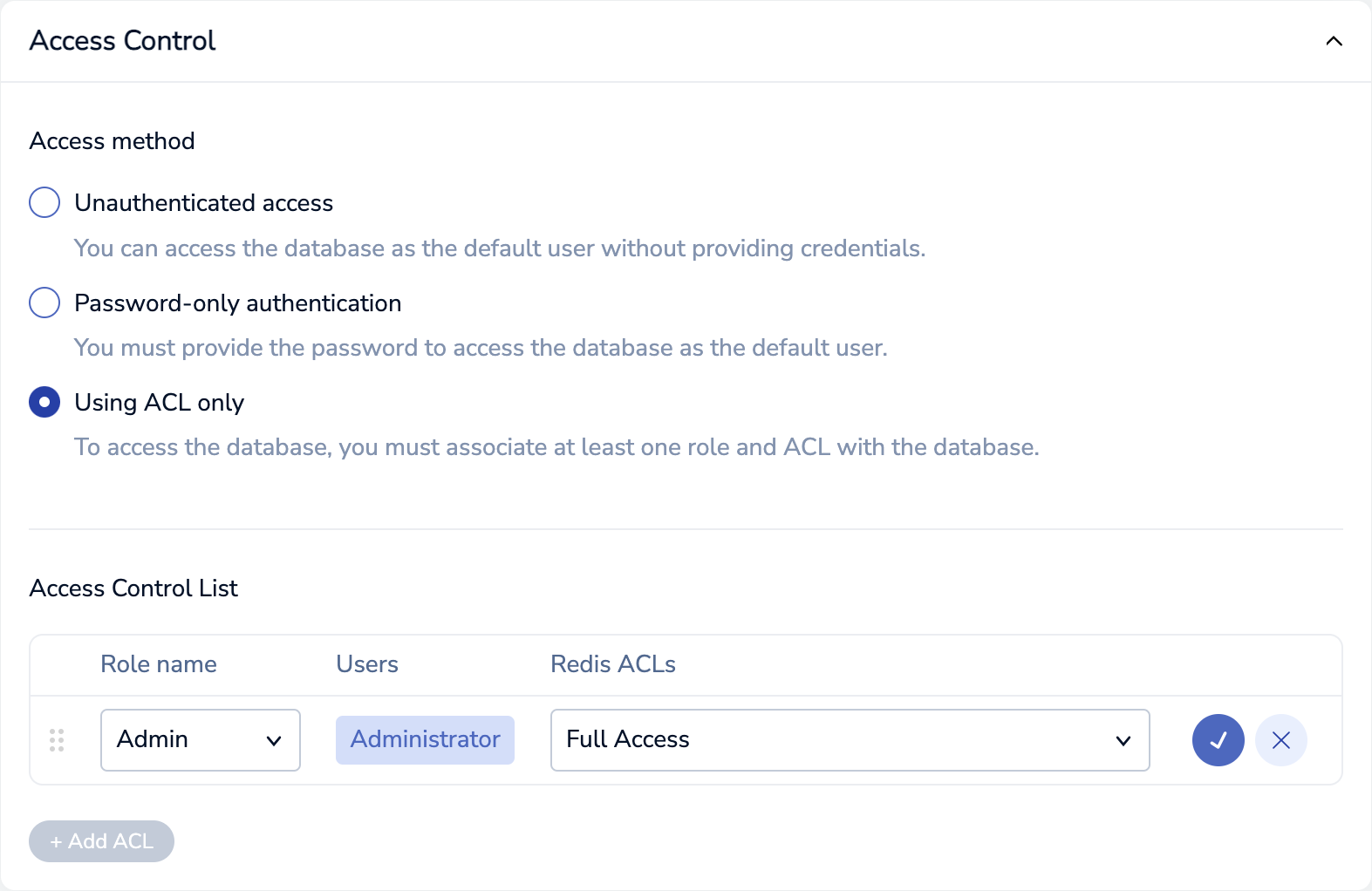 In the Access Control List section, select + Add ACL.